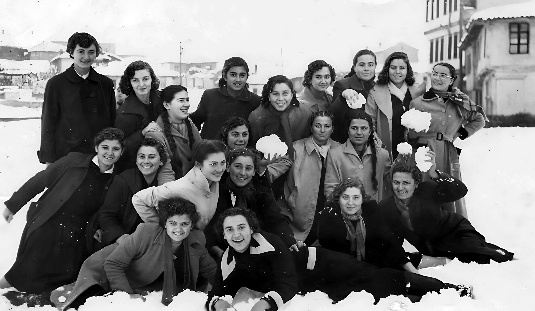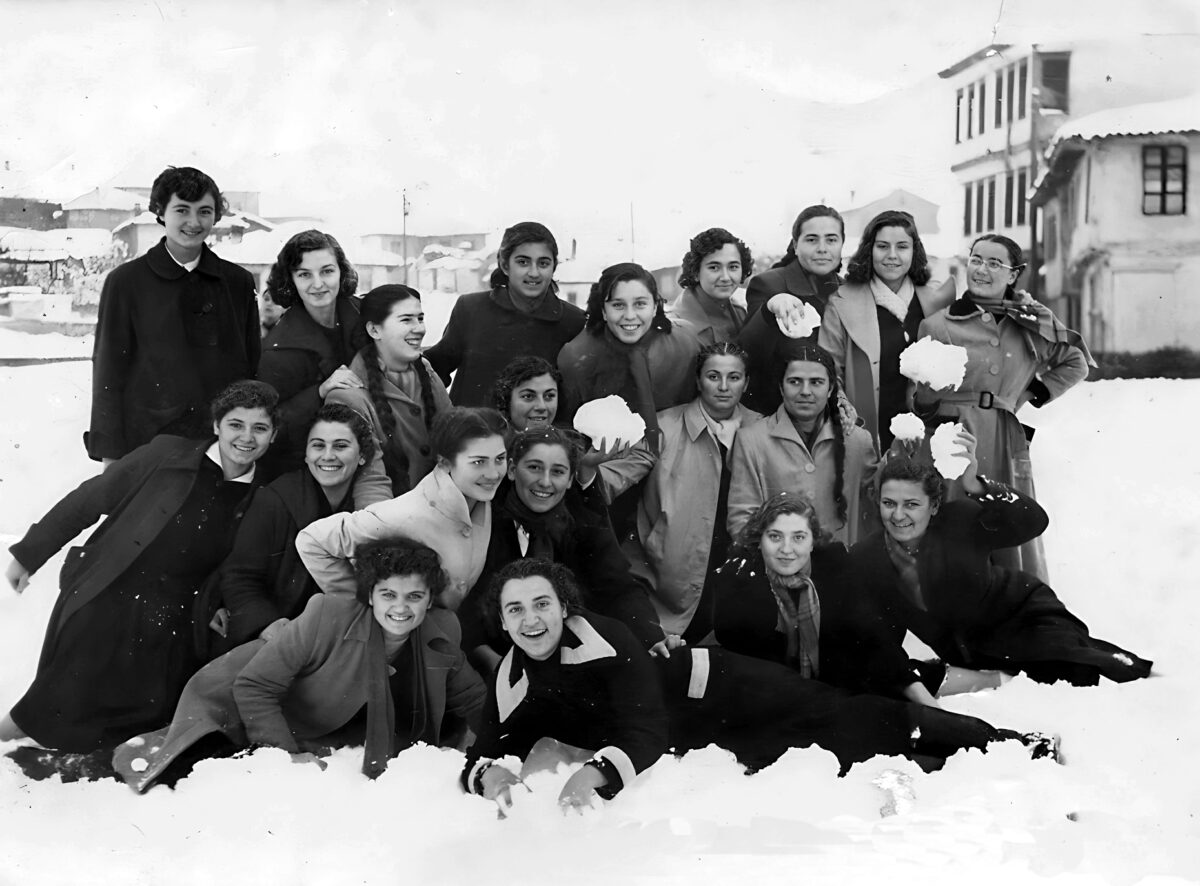 Πάντοτε η Φλώρινα το χειμώνα ήταν ντυμένη στα άσπρα και οι νέοι και οι νέες έβρισκαν την ευκαιρία να κάνουν παιχνίδια στα χιόνια. Τέτοιο παιχνίδι, έκαναν στις 22 Δεκεμβρίου του 1953 στον ελεύθερο χώρο, όπου σήμερα είναι το κτίριο του Φ.Σ.Φ. «Ο ΑΡΙΣΤΟΤΕΛΗΣ», με φόντο το παραδοσιακό σπίτι της οικογένειας Πέιου, οι συμμαθήτριες της Ζ΄ τάξεως του Γυμνασίου Θηλέων Φλωρίνης.