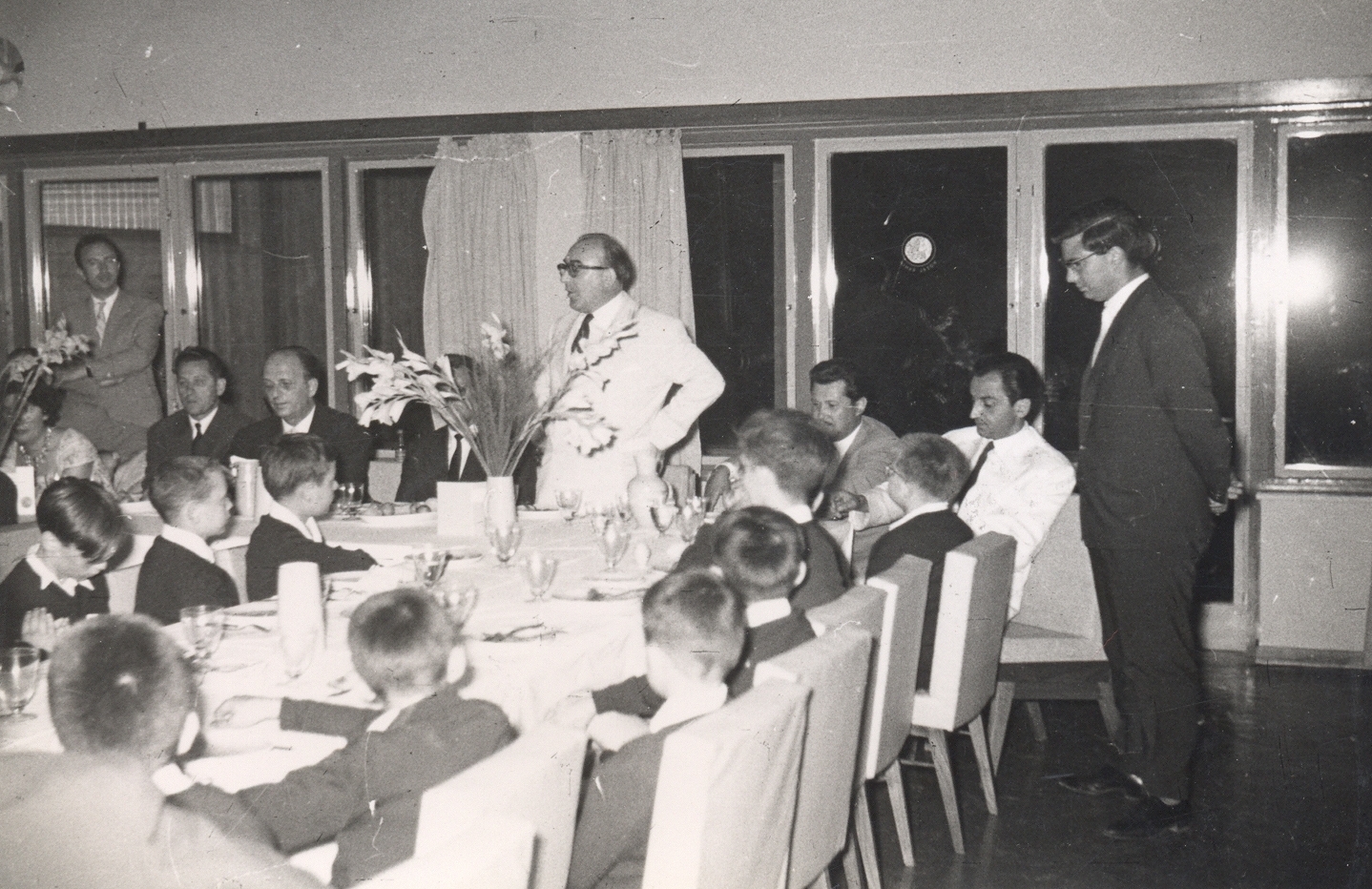 Ο πρόεδρος του εποπτικού συμβουλίου του «Αριστοτέλη» Σοφοκλής Τσάπανος απευθύνει χαιρετισμό κατά τη διάρκεια του δείπνου που δόθηκε προς τιμήν των «Μικρών Τραγουδιστών των Παρισίων» στο Ξενοδοχείο «Ξενία»