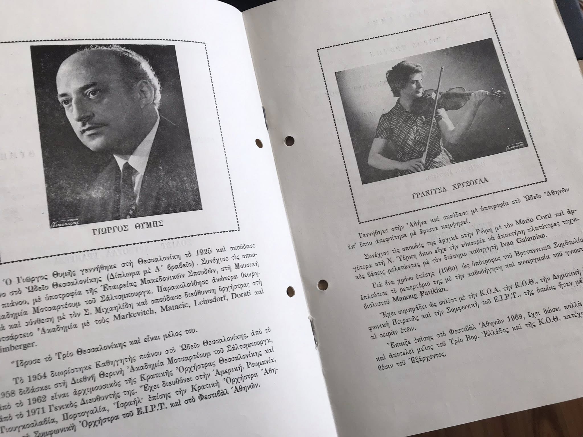 Ευχαριστώ τον Γιώργο Αλεξίου ο οποίος μέσω της Όλγας Μούσιου Μυλωνά μου έστειλε από το αρχείο του το πληροφοριακό τεύχος – πρόγραμμα εκείνης της συναυλίας.